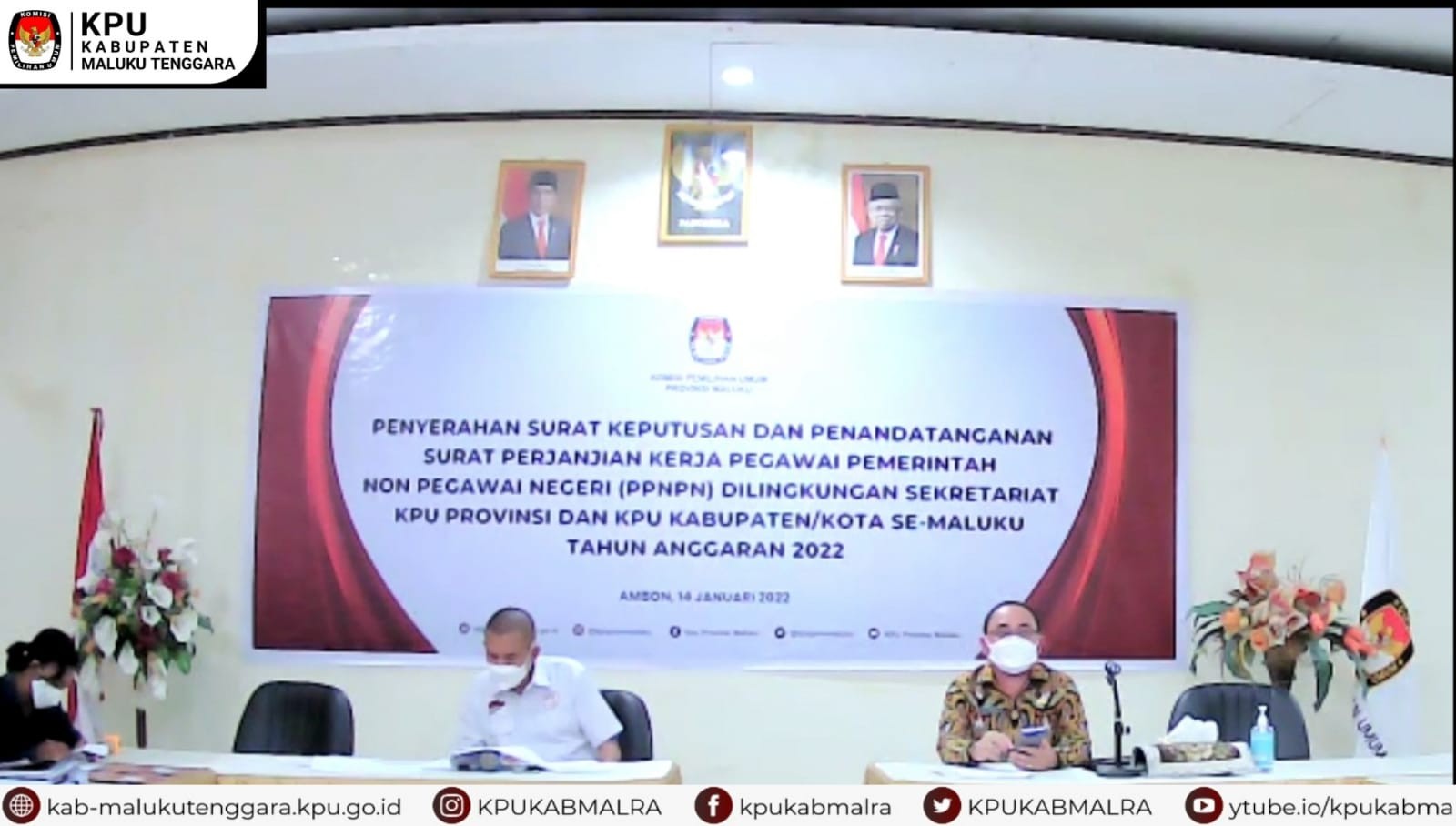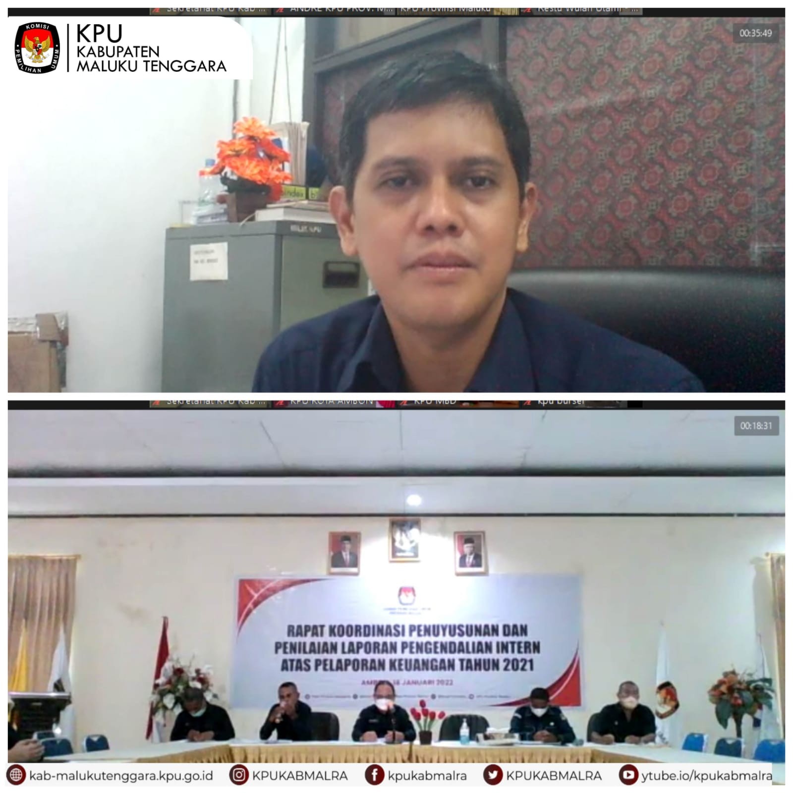 Senin, 31 Januari 2022 Koordinator Divisi Teknis Penyelenggara Pemilu Melkior Roy Renel didampingi Kasubag Teknis Pemilu, Partisi dan Hubungan Masyarakat Ivana Sikteubun, SH mengikuti Rapat Koordinasi Penataan Daerah pemilihan untuk Persiapan tahapan Pemilu 2024, yang akan dilaksanakan oleh KPU Provinsi Maluku dengan KPU Kabupaten/Kota se-Maluku secara Daring.